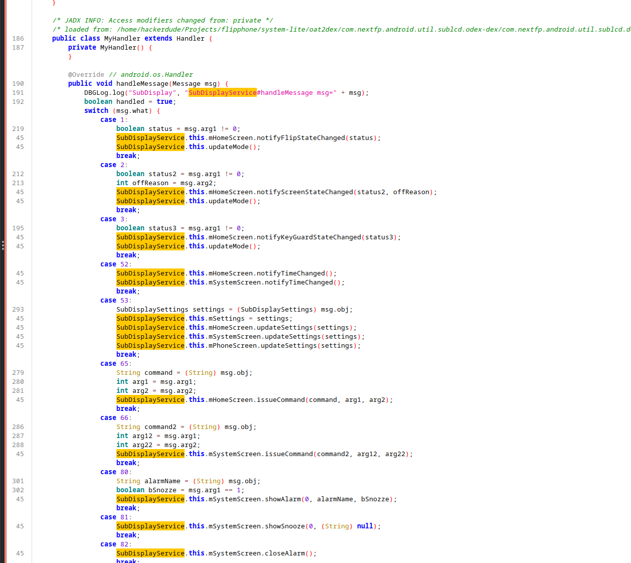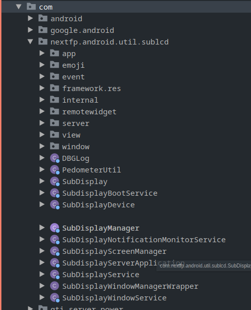 com.nextfp.android.util.sublcd seemed to be the app I was interested in, so I dumped it via ADB and…