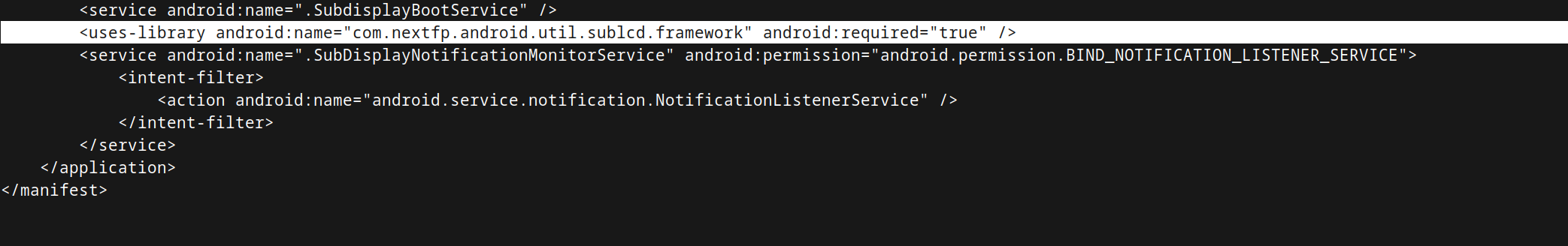 The manifest, however, pointed me towards com.nextfp.android.util.sublcd.framework, which upon extracting had a bunch of PNGs, interestingly some which could not be displayed on my model due to the resolution, so I suspect this “framework” was for other models: