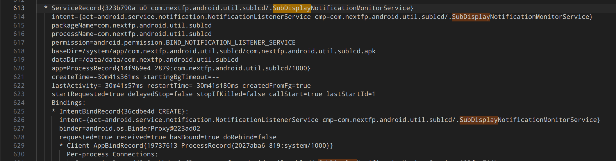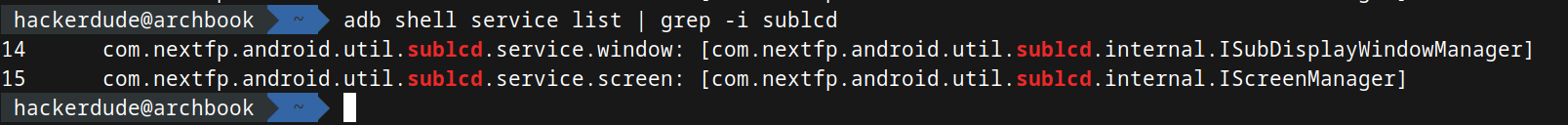 To dump a list of running services, and a quick search for “subdisplay” (as the settings app referred to it) yielded some interesting results: