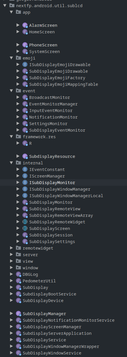 It seemed that the subdisplay stuff was… heavily overengineered, but regardless what I was able to learn is that the subdisplay interface is exposed as a bindable service: